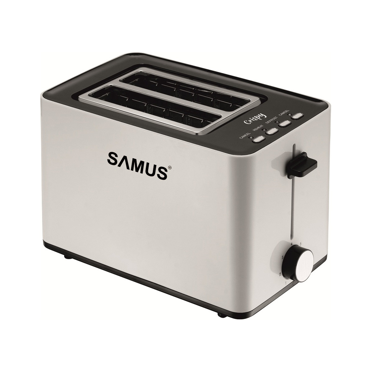 PRAJITOR PAINE SAMUS CRISPY мощность 850 Вт пластмассовый корпус 6-обжарки 2 слот крепления ломтика хлеба размораживание нагревательная остановка вручную автоматический механизм для подъема ломтиков мусора лоток место хранения кабеля современный дизайн
