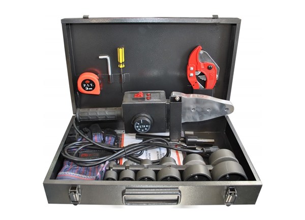 АППАРАТ ДЛЯ СВАРКИ ПЛАСТИКОВЫХ ТРУБ PIT Мощность: 2 кВт В комплекте: 6 насадок, ножницы по пластику, рулетка 3 м, отвертка, шестигранный ключ, рабочие перчатки, металлический кейс.