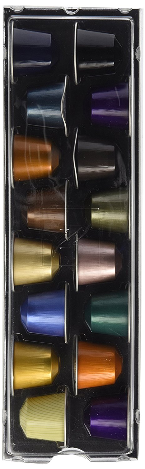 Ассорти набор кофе Nespresso Tasting Pack для Nespresso (16 капсул) 14 капсул 100% натурального жареного молотого кофе. 1 капсула 100% натурального декафеинированного кофе. 1 капсула 100% натурального жаренного ароматизированного кофе с ванильным ароматом.