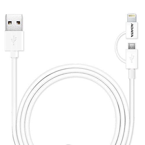 Sync & Charge 2-in-1 LightningµUSB cable ADATA, White, Apple MFi certified, 100cm, Plastic, High QualitySync & Charge 2-in-1 LightningµUSB cable ADATA, White, Apple MFi certified, 100cm, Plastic, High Quality