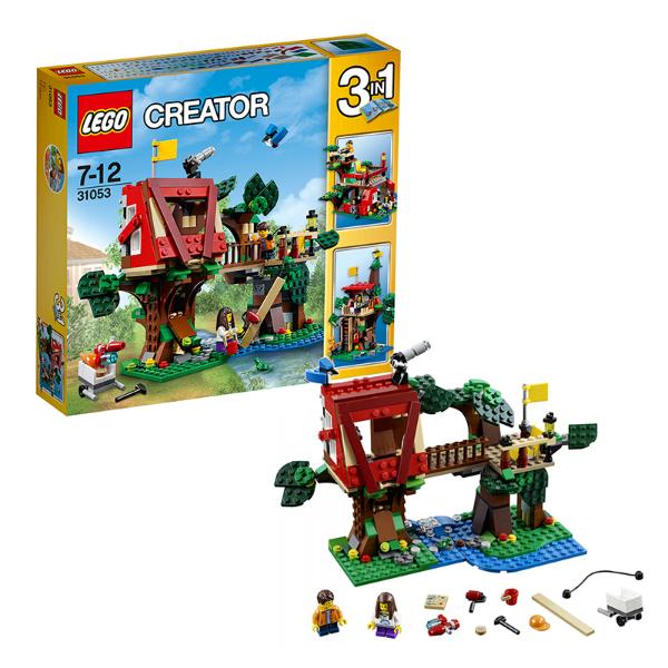 Treehouse Adventures V29 Детям от 7 лет до 12 лет Наслаждайся захватывающими приключениями с этой красочной моделью LEGO® Creator 3-в-1. Помоги детям построить домик на дереве. Опусти шкив, чтобы сразу поднять доски, возьми молоток и гвозди, чтобы сбить их вместе, и валик с краской, чтобы добавить последние штрихи. Когда закончишь строительство, положи инструменты в потайной шкаф и подними флаг в домике на дереве! Используй водяной пистолет, чтобы отогнать захватчиков, и веселись, наблюдая за крошечной голубой сойкой и лягушкой, которые живут по соседству. Перестрой домик в классный клубный домик или удивительный форт. Количество деталей: 387.