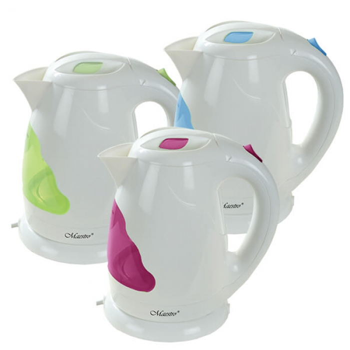 Электрочайник Maestro MR -034 Производитель: MAESTRO Мощность (Вт): 2000 Вт. Объем (л): 1,7 л Цвет: Синий Цвет: Зеленый Цвет: Розовый Тип: Чайник Материал корпуса: Пластик Индикатор уровня воды: Да