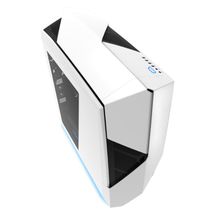 "CaseNZXTNoctis450GlossyWhite+Bluew/oPSU(CA-N450W-W1)Size:MidTowerDriveBays:External5.25"":0Internal3.5""/2.5"":6+2CoolingSystem:Front:2x140/3x120mm(3x120mmFNV2FansIncluded)Top:2x140/3x120mmRear:1x140/120mm