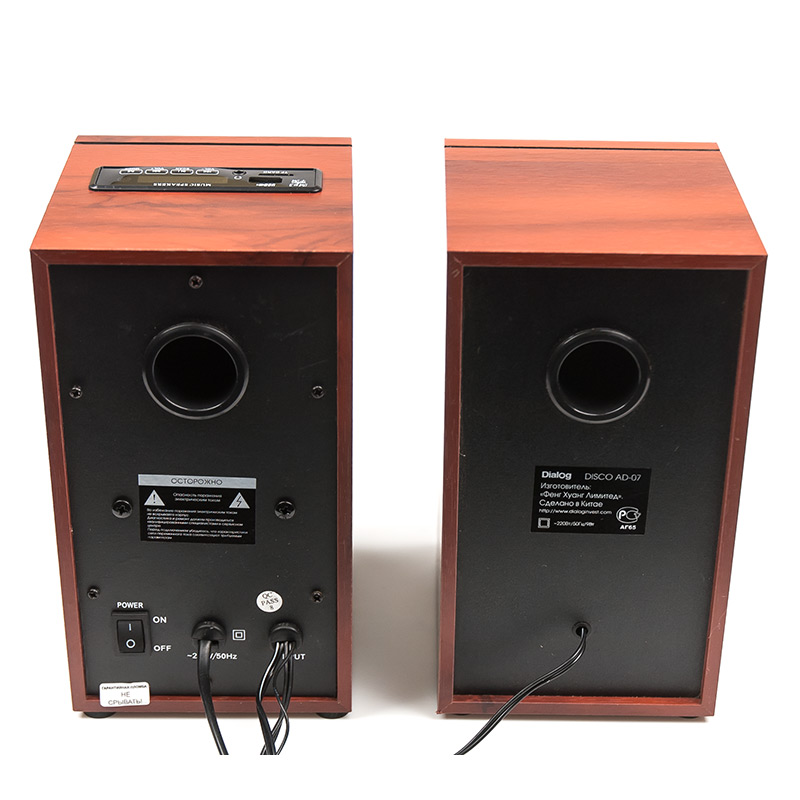 Dialog Disco 24W RMS - 2.0, MDF вишня, FM радио, USB+microSD reader, беспроводной пульт ДУ
