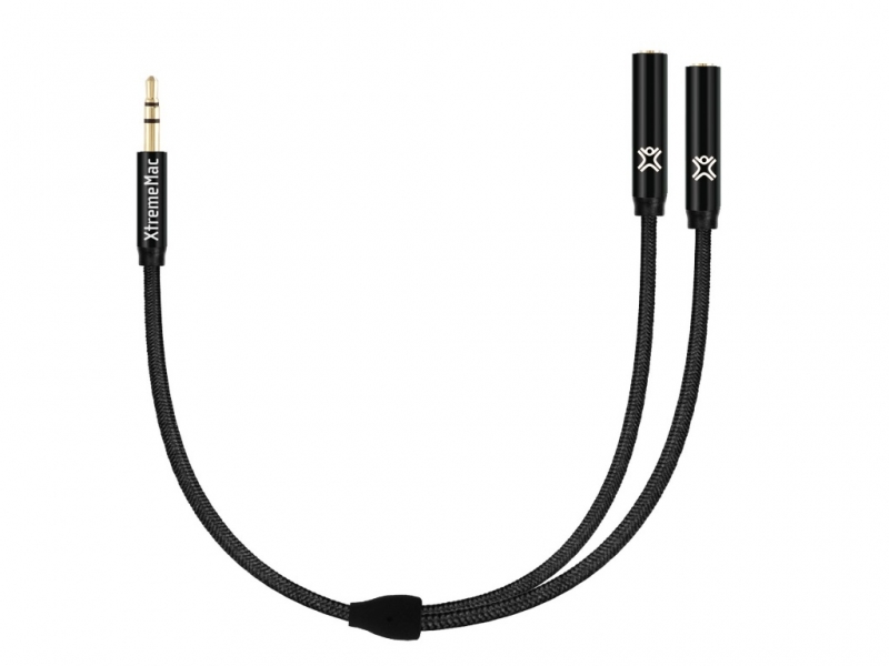 Audio splitter cable XtremeMac Splitter for Headphone, Black, 3.5mm stereo to 2 x 3.5mm, Nylon, Gold Plated connectors, Connect 2 headphones to the same device