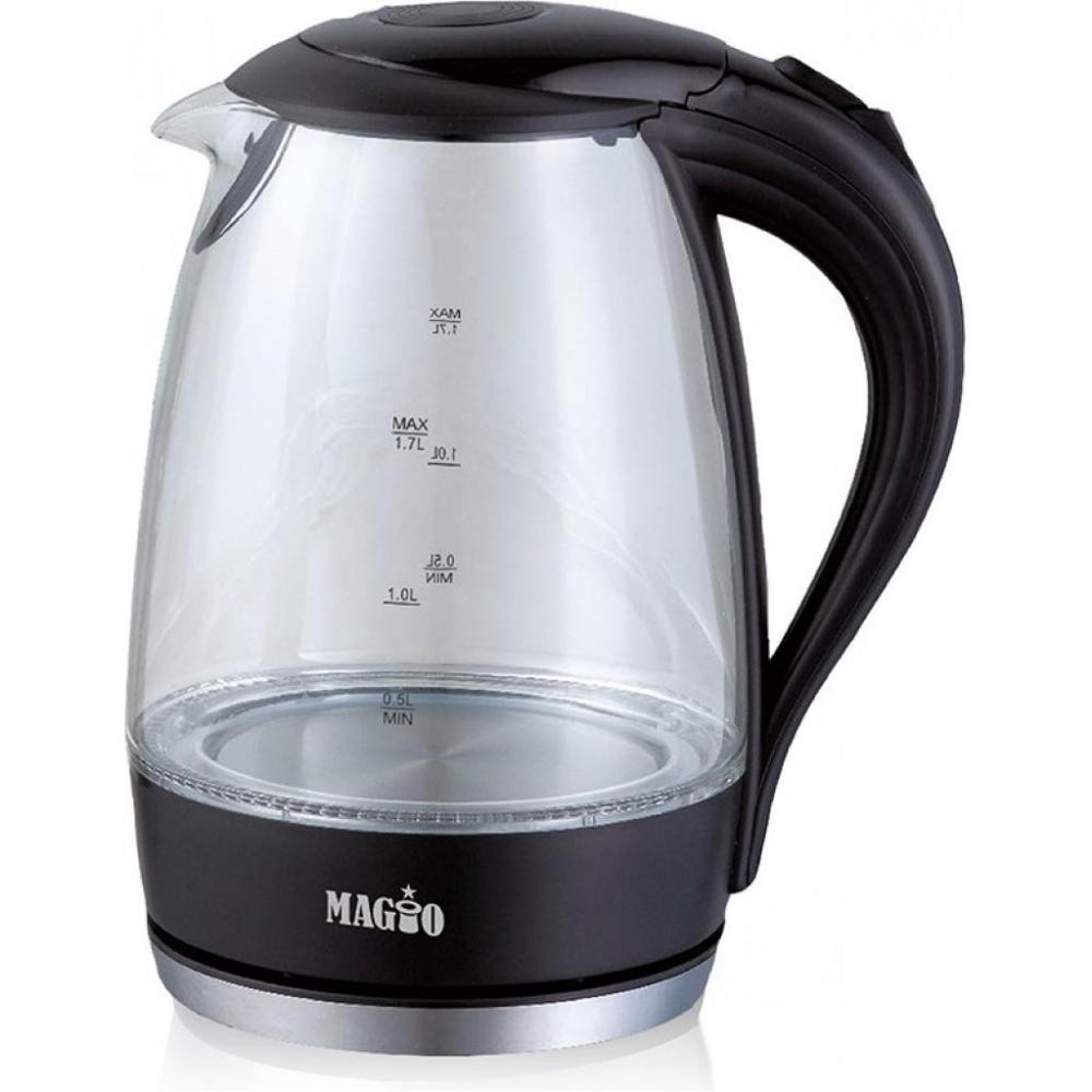 MAGIO MG-501 Такой электрочайник, как Magio MG-501, удачно сочетает в себе стильный привлекательный дизайн и хорошие технические характеристики. При мощности в 2200 Вт, способен за короткий временной промежуток закипятить до 1,7 л воды. В Magio MG-501 установлен дисковый нагревательный элемент скрытого типа, который способствует сокращению времени нагрева и повышению безопасности чайника в целом. Несмотря на стеклянный корпус, такой чайник имеет хороший запас прочности и является нетребовательным в обслуживании. Помимо этого, в нем есть фильтр от накипи и индикаторы, позволяющие отследить уровень воды и его включение. Не подведет функция автоматического отключения Magio MG-501, а также предусмотренная в нем защита от перегрева. Производитель Magio Тип Электрочайник Мощность, Вт 2200 Объем, л 1,7 Тип нагревательного элемента дисковый (скрытый) Материал корпуса стекло+пластик Цвет черный Индикатор уровня воды есть Поворот на подставке на 360 град. есть Защита от перегрева есть Подогрев до заданной температуры (термостат) нет Поддерживание заданной температуры нет