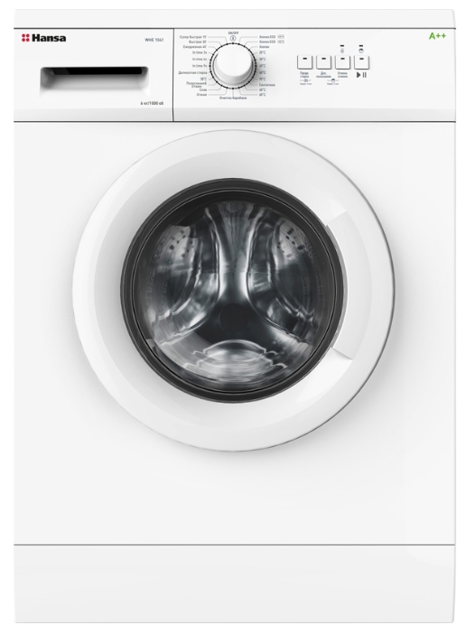 HANSA WHE 1041 Установка отдельно стоящая Тип загрузки фронтальная Максимальная загрузка белья 6 кг Сушка нет Управление электронное (интеллектуальное) Габариты (ШxГxВ) 60x47x85 см Вес 54 кг Цвет белый Класс энергопотребления A++ Класс эффективности стирки A Класс эффективности отжима C Скорость вращения при отжиме до 1000 об/мин Выбор скорости отжима есть Отмена отжима есть Защита от протечек воды частичная (корпус) Защита от детей есть Контроль дисбаланса есть Контроль за уровнем пены есть Количество программ 23 Программа стирки шерсти есть Специальные программы стирка деликатных тканей, супер-полоскание, быстрая стирка, предварительная стирка Материал бака пластик Дополнительные возможности выбор температуры стирки Дополнительная информация очистка барабана