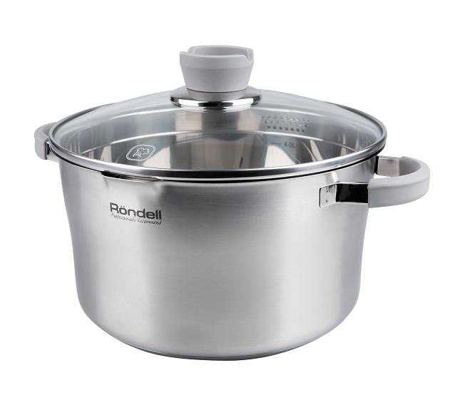 RONDELL кастрюля RDS-0740 (2,4 л) Вашему вниманию представлена самая миниатюрная из кастрюль коллекции Rondell Favory. Ее объем составляет 2,4 литра. Этого вполне достаточно, чтобы приготовить полноценный обед на всю семью. Диаметр кастрюли 18 см. Обратите внимание, что к своему основанию она слегка сужается – эта черта характерна для всей коллекции Favory. На внутренней поверхности нанесена четко видимая разметка литража, чтобы вы могли контролировать объем приготовленного блюда. Кастрюля RDS-740 создана для вашего удовольствия! Материал - высококачественная нержавеющая сталь 18/10 Внешняя поверхность - матированная полировка Толщина стенок – 0,6 мм Толщина дна – 5,0 мм Крышка - термостойкое стекло, отверстие для выпуска пара, ободок из силикона против сколов и трещин Бакелитовые не нагревающиеся аксессуары - комбинация стали и силикона.