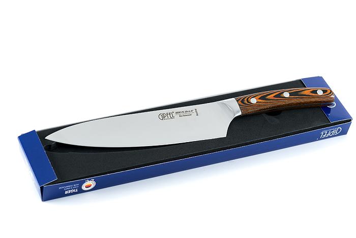 Нож поварской GIPFEL GP-6974 (20cм) Артикул: 6974 Серия:TIGER Материал:сталь нож поварской длина лезвия 20 см материал лезвия: нержавеющая сталь X50Cr15 материал ручки: древеснослоистый пластик, нержавеющая сталь