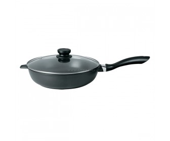 RONDELL сотейник RD-0121 Диаметр: 28 см. Материал: утолщенный литой алюминий Основной цвет: черный Внутреннее покрытие: TriTitan® - трехслойное, износостойкое антипригарное покрытие на основе титана Внешнее покрытие и отделка: антипригарное покрытие для легкого ухода Толщина стенок: 2.5 мм Толщина дна: 5.5 мм Материал крышки: комбинированное: термостойкое стекло и бакелит Аксессуары: прочная бакелитовая ручка Тип крепления аксессуаров: винтовое Преимущества: возможно использование металлических лопаток Ободок крышки из нержавеющей стали против сколов и трещин Отверстие в крышке для выпуска пара Эргономичная форма ручек Использование: не подходит для духовки Подходит для всех видов плит, кроме индукции Подходит для посудомоечной машины