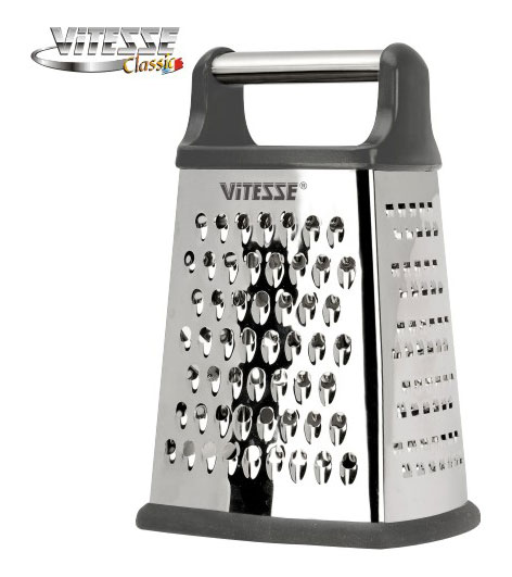 VITESSE терка VS-8609 Артикул - VS-8609 Материал - нержавеющая сталь 18/10 Полировка - Зеркальная Размер коробки,см - 15,50 х 12,50 х 22,00 Вид терки - Квадратная Можно мыть в посудомоечной машине - да Бренд: ViTESSE Classic Размер: 9” 4 рабочих поверхности: нарезка ломтиками, шинкование, крупная и мелкая терки Измельчение и шинкование овощей, шоколада, твердого сыра и т.д. Нескользящая прорезиненная основа Вес - 256 грамм