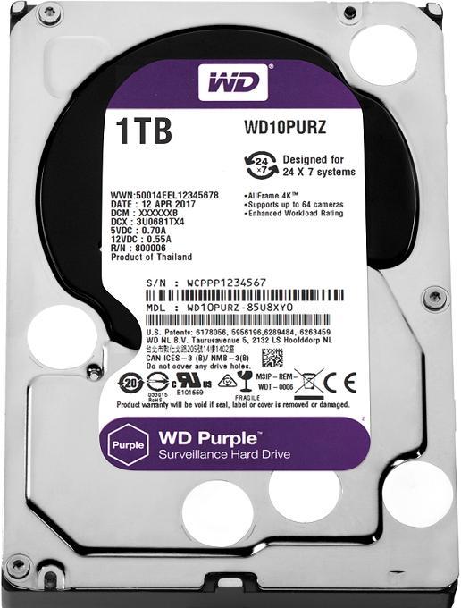 3.5" HDD 1TB Western Digital Purple (Surveillance HDD) WD10PURZ, 5400rpm, SATA3 6GB/s, 64MB (hard disk intern HDD/внутренний жесткий диск HDD)