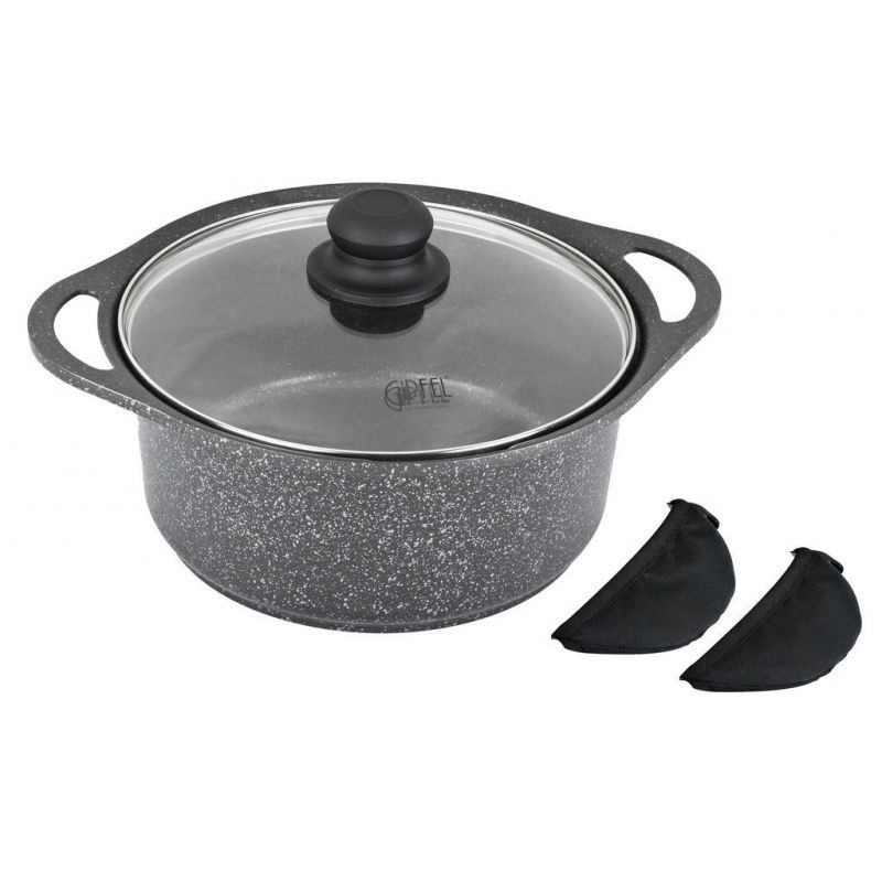 кастрюля GIPFEL GP-0510 Модель GP-0510 Бренд GIPFEL Объем, л 4,3 Размеры, см 24х11,3 Материал корпуса алюминий Внутреннее покрытие мраморное антипригарное Крышка в комплекте да Материал крышки стекло Термостойкость да