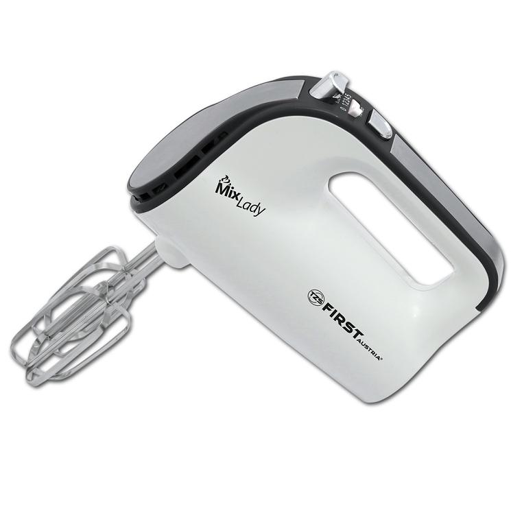 Миксер FIRST 005263-1 Мощность 350 Вт. 5 скоростей Режим турбо Кнопка освобождения насадок 2 пары насадок Электропитание: 220-240 В, 50-60 Гц.