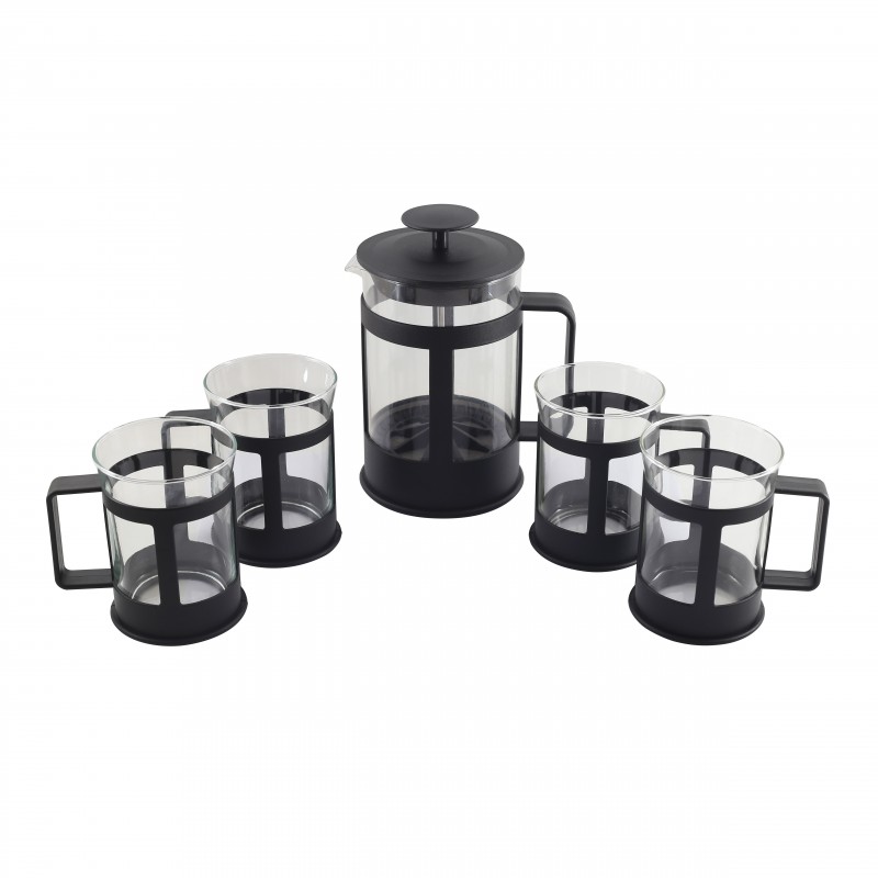 Hoffmuller HLPSET ЗАВАРОЧНЫЙ ЧАЙНИК 850 мл С ПРЕССОМ+ 4 ЧАШКИ Hoffmuler