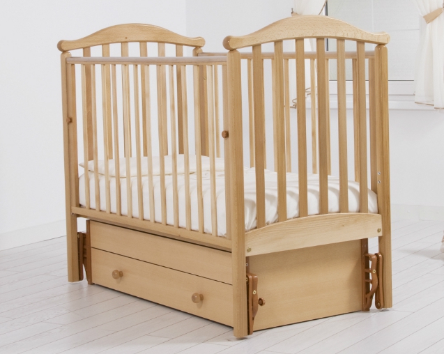 GANDYLYAN Кроватка с универсальным механизмом маятникового качания «Людмила» Простота сборки и красивый дизайн - вот несомненные преимущества кроватки-маятника Людмила от фабрики Гандылян, одного из лучших российских производителей детской мебели. Кроватка изготовлена из натуральной древесины бука, одного из лучших материалов для детской мебели. Заботясь о безопасности вашего ребенка, производитель выбрал только безвредные лаковые покрытия на водной основе, а также защитил верхние планки надежными силиконовыми накладками. Фиксируемый маятниковый механизм продольного качания позволит без труда уложить малыша спать, бесшумно убаюкивая кроху в его собственной кроватке. Выдвижной ящик для белья с крышкой надежно упрятан под днищем, используя свободное пространство. Кроватка имеет два уровня дна, а также опускающуюся переднюю стенку с механизмом запора. Это позволит по необходимости увеличивать глубину кроватки. Когда малыш подрастет, переднюю стенку можно будет снять. Характеристики маятниковый механизм для продольного качания выдвижной ящик для белья древесина обработана экологически чистым лаком отсутствуют острые углы (есть силиконовые накладки) боковое ограждение оснащено замком и регулировкой высоты два уровня ложа по высоте От производителя: Продукция изготовлена из ценной породы древесины - Бук, с применением новейших технологий. Для окраски применяются лаки, не содержащие вредных для здоровья ребенка веществ. Контроль качества производится непосредственно при сборке каждого элемента конструкции. Вся продукция сертифицирована и соответствует Государственному Стандарту. Размер упаковки (м) 1.26 х 0.74 х 0.20 Страна изготовления Россия Материал бук + ДСП Вес в упаковке (кг) 36.6 Объем упаковки (м.куб) 0.19 Тип кроватки маятник универсальный Длина (см) 127 Ширина (см) 72 Высота (см) 107 Размер спального места (см) 120х60 Число уровней высоты днища 2 Опускающаяся стенка есть Съемная передняя стенка есть Силиконовые накладки есть Ящик есть Количество ящиков 1 Колеса нет Матрас в комплекте нет