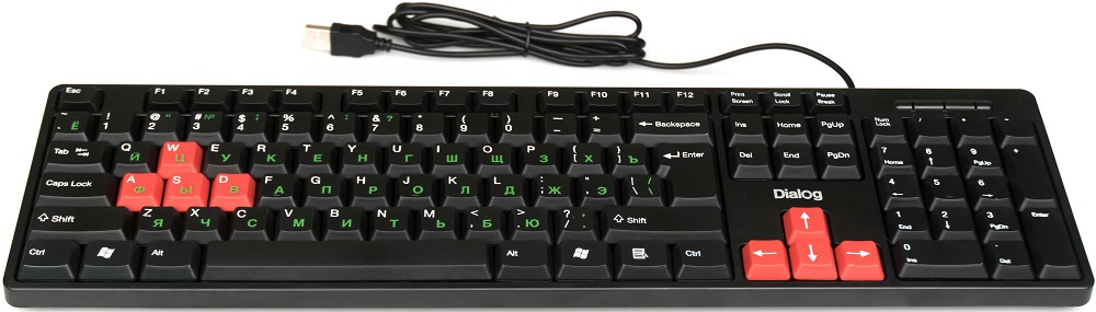Клавиатура Dialog KS-030U Black-Red USB проводная клавиатура интерфейс USB для настольного компьютера классическая конструкция, мембранная клавиш: 104 размеры (ШxВxГ): 438x22x122 мм вес: 362 гКлавиатура Dialog KS-030U Black-Red USB
