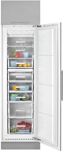 Холодильник TEKA TGI2 200 NF Морозильная камера TGI2 200 NF комбинируется с холодильной камерой TKI2 300. Функционал модели включает электронное управление, кнопку быстрой заморозки и систему NoFrost. Внутренняя подсветка, возможность перенавешивания дверцы и электронный регулируемый термостат повышают комфорт эксплуатации. Модель работает даже при низкой температуре помещения 5 °С. Ключевые преимущества: Кнопка быстрой заморозки. Система NoFrost. Электронная регулировка температуры. Тип встраиваемый Вид морозильник Ширина встраивания (см) 56 Высота (см) 177.1 Ширина (см) 54.3 Глубина (см) 54.5 Габариты (ВхШхГ)(см) 177.1 х 54.3 х 54.5 Количество камер 1 Звездочное обозначение **** Общий объем (л) 220 Объем морозильной камеры (л) 196 Цвет белый Дверной упор справа Возможность перевешивания двери Да Монтаж двери жесткое крепление (система door on door) Система управления электронная Дисплей цифровой Отображение на дисплее температуры в камере Да Общий объем морозильной камеры (л) 196 Производительность замораживания (кг/сутки) 10 Автономное сохранение холода (ч) 15 Размораживание морозильной камеры No Frost Количество ящиков в морозильной камере 8 Материал полок и ящиков в морозильной камере пластик Лоток для приготовления кубиков льда Да Отсек для быстрой заморозки 2 Индикаторы температуры морозильного отделения Да Внутреннее освещение морозильной камеры Да 1 компрессор Да Регулируемый термостат Да Скрытый испаритель Да Класс энергопотребления A+ Индикация открытой двери световая и звуковая Индикация повышения температуры световая Сигнализация о неисправности световая и звуковая Изготовлено в соответствии с нормами ЕС Страна-производитель Турция