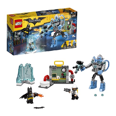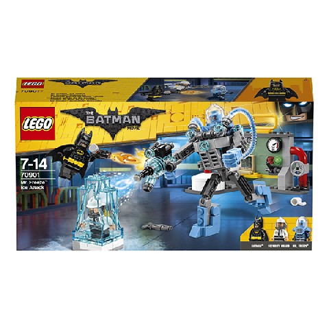 Mr.Freeze Ice Attack LEGO Batman Movie "Ледяная aтака Мистера Фриза" Перехвати Мистера Фриза, который в своем экзокостюме отправился на электростанцию Готем-сити. Растопи ледяную тюрьму при помощи огнемета Бэтмена, чтобы выпустить на свободу охранника электростанции, а потом сразись с суперзлодеем. Уклоняйся от выстрелов ледяной пушки экзокостюма и направь на Мистера Фриза горячую струю из огнемета. Только Бэтмен может всех спасти! Количество деталей : 201 Рекомендуемый возраст: 7 - 14 лет
