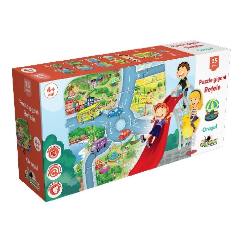 Puzzle Gigant Retele-Orasul Noriel Пазл Гигант "Город" (25 деталей) Отличный пазл для вашего воображения! Объедините пазлы осторожно и создайте загадки, которые рассказывают все истории, которые вы знаете, и придумывайте новые приключения! Выставляйте его в своей комнате и делайте всю семью частью великих приключений своего воображения! Детали большие, легко монтируются и изготовлены из прочного, надежного материала. Сборка в любой конфигурации. Объединяет несколько наборов одного и того же типа. Содержит: 16 пазлов панорама города, 5 детских фигурок, 4 x машины, 9 подставки под фигуры. Размеры: 69 x 68 см Возрастная рекомендация: 4 года +
