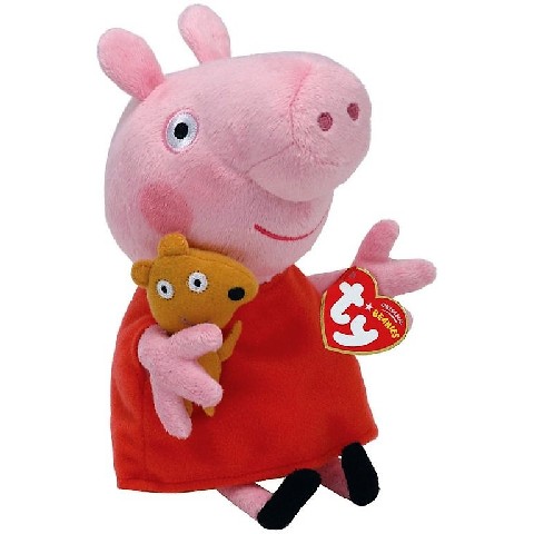 BB PEPPA PIG - Peppa 15 cm TY Мягкая Игрушка "Свинка Пеппа" 15 см Любимый герой - румяная свинка Пеппа - выполнена из мягкого плюша. Свинка одета в красный сарафан, в лапках она держит игрушку в виде собачки. У свинки вышиты глазки, пяточек и улыбающийся ротик. Игрушка изготовлена из высококачественного материала совершенно безвредного для ребенка. Свинка не занимает много места, с ней можно играть в доме, также ее удобно брать с собой на прогулку. Высота игрушки: 15 см Рекомендуемый возраст: от 3-х лет +