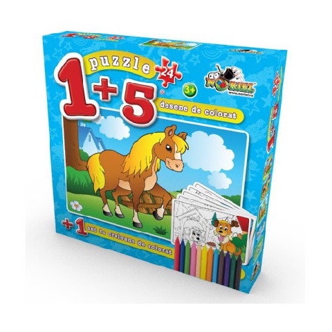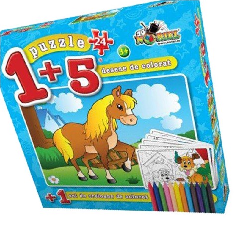 PUZZLE COLOREAZA-MA 24 PCS 1 Noriel Пазлы Раскрась меня "Лошадь" Пазл идеально подходит для самых маленьких, он позволяет им собирать пазл и сразу раскрашивать его, создавать нарядные, цветные изображения для всей коллекции! Набор содержит: Один пазл c 24 деталей, 5 раскрасок, 1 набор цветных карандашей. Рекомендуемый возраст: от 3 лет +