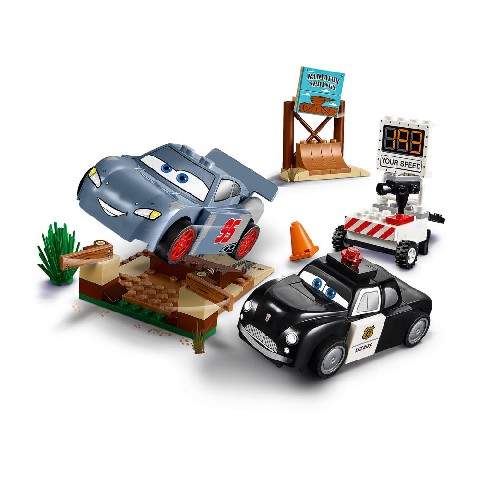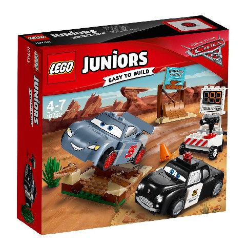 Willy's Butte Speed Training LEGO Juniors "Тренировочный полигон Вилли Бутта" Установи новый предел скорости с Молнией МакКуином во время тренировки на гоночном полигоне Вилли Бутта. Доставь Шерифа на место и с помощью радара определи время победителя, когда тот промчится мимо, собьёт указатель Радиатор Спрингс и прорвётся через заграждение. Это новый рекорд! Но сможет ли Молния МакКуин побить его ещё раз? Количество деталей: 95 Детям: от 4 лет до 7 лет