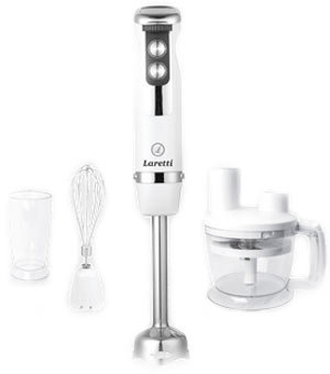 Блендер LARETTI 7304 Тип: погружной Мощность 800 Вт Кол-во скоростей плавная регулировка Емкость стакана 800 мл Мини-измельчитель нет Колка льда нет Материал ножки блендера металл Комплектация венчик, шинковочно-терочные ножи Особенности Объем чаши: 1250 мл DC мотор Регулировка скоростных режимов работы для обработки продуктов любой степени твердости LED подсветка переключателей режимов работы Функция «Турбо» Функции: блендера, миксера, кухонного комбайна Шафт и нога блендера из высококачественной нержавеющей стали Съемная удлиненная нога для эффективной обработки холодных и горячих продуктов Венчик и ножи из высококачественной нержавеющей стали Многофункциональная чаша для измельчения и шинковки с защитным блокировочным механизмом Стильный дизайн с хромированными декоративными элементами Низкий уровень шума Цвет белый