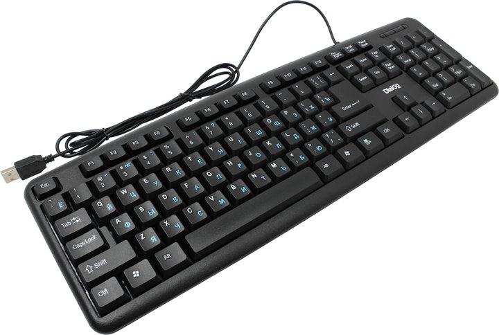 Клавиатура Dialog KS-020U Black проводная клавиатура интерфейс USB для настольного компьютера классическая конструкция, мембранная клавиш: 104 размеры (ШxВxГ): 440x20x130 мм