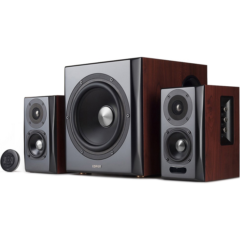 Колонки Edifier S350DB Brown компьютерная акустика 2.1 суммарная мощность 150 Вт двухполосные колонки материал корпуса колонок: MDF материал корпуса сабвуфера: MDF Bluetooth пульт ДУ