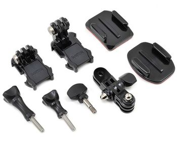 GoPro Grab Bag -give yourself more mounting options and spare parts. Includes Curved and Flat Adhesive Mounts, two Mounting Buckles, a 3-Way Pivot Arm, plus a variety of short and long thumb screws, compatible with all GoPro cameras.