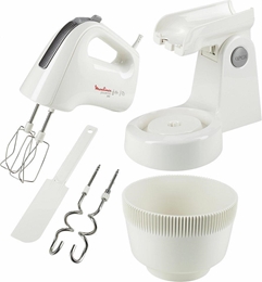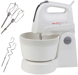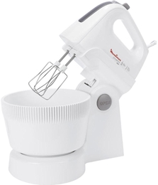 Миксер Moulinex HM615110 Макс. потребляемая мощность, Вт 500 Количество скоростей 5 Турборежим да Материал корпуса пластик Материал чаши пластик Тип стационарный Количество насадок 4 Насадки в комплекте насадка для взбивания, для теста Венчик для взбивания 2 Крюк для теста 2 Цвет белый Доп. особенности вращение чаши