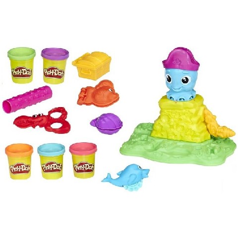 PD CRANKY THE OCTOPUS HASBRO Hasbro Play-Doh Игровой набор "Веселый Осьминог" Присоединяйся к поиску морских сокровищ вместе с Веселым Осьминогом! Помоги Осьминогу отрастить щупальца, сделай золотую рыбку с помощью формочки, формируй детали с помощью дельфина, отрезай нужные формы клешней лобстера и украшай коррал специальным роликом. А еще ты можешь создать сокровища с помощью специальной формы-сундука и даже сделать жемчужину внутри ракушки. Развивай воображение вместе с Play-Doh! В комплекте: различные аксессуары и 5 стандартных баночек Play-Doh Рекомендуемый возраст: 3 года +