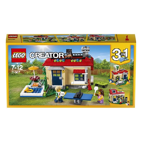Modular Poolside Holiday LEGO Lego Creator "Вечеринка у бассейна" Собери дом своей мечты с помощью набора "Вечеринка у бассейна" 3 в 1, в который входит красно-бежевый дом с террасой на крыше, украшенной цветами, и детально продуманным интерьером - там есть даже телевизор и стильный зелёный диван. Катайся на скейтборде, наслаждайся игрой в настольный теннис, разучивай разные мелодии на гитаре или ныряй в бассейн. Потом наслаждайся барбекю на крыше дома или мороженым в тени тента. Используй разные сочетания кубиков, чтобы сделать свой дом неповторимым: замени окна и двери или построй бассейн на крыше дома - выбор за тобой! Из этого набора Lego Creator ты также можешь построить Скейтпарк или Гараж для репетиций музыкальной группы. Количество деталей: 356 Рекомендуемый возраст: 7 - 12 лет