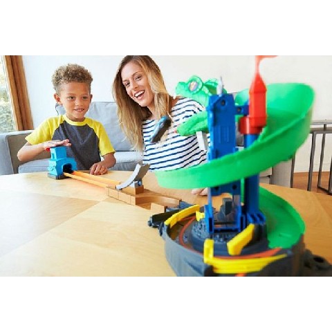 Pista HW "Cobra" Mattel Mattel Hot Wheels Игровой трек "Укус кобры" Включи свое воображение, когда гигантская Кобра атакует HotWheels и хватает автомобили в свои челюсти! Цель игры – запустить свою машину так, чтобы перепрыгнуть через голову Кобры и избежать ее ядовитого укуса! Если же машинка все-таки попала в челюсти Кобры, лучшим решением проблемы станет запуск другого автомобиля для освобождения захваченного! Ход игры: можно регулирования положения головы Кобры для разных результатов; попытайтесь пролететь над головой Кобры и нажать на спусковой крючок на дне ее хвоста, чтобы сбить его; когда Кобра побеждена, она опускается. Особенности: наборы Hot Wheels City совместимы между собой; включает в себя один автомобиль HotWheels. Рекомендуемый возраст: 4 - 8 лет