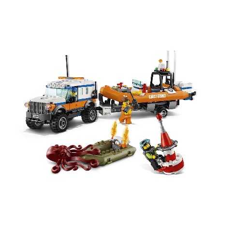 4 x 4 Response Unit LEGO LEGO City "Внедорожник 4х4 команды быстрого реагирования" Вызови команду быстрого реагирования береговой охраны, чтобы помочь терпящему бедствие аквалангисту! Скорее отправляйся в гавань на внедорожнике 4х4 команды быстрого реагирования. Проверь необходимое снаряжение и спускай на воду спасательный катер береговой охраны, посмотри в море и найди терпящего бедствие аквалангиста и его катер. Он вон там, у спасательного буйка! Катер горит, а что это на его борту? Это ещё один полный впечатлений день работы береговой охраны Lego City! Количество деталей: 347 Рекомендуемый возраст: 5 - 12 лет