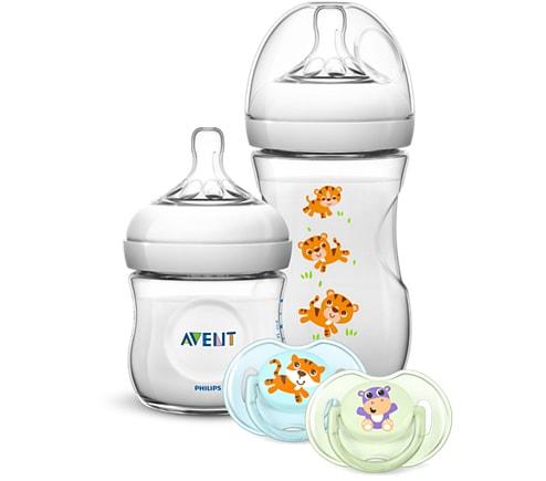 Philips Avent SCD289/01 Set cadou Natural cu 2 biberoane Natural 125ml, respectiv 260ml si doua suzete cu model набор бутылочек с аксессуарами количество бутылочек в наборе: 2 шт. для детей с рождения материал емкости: пластик размер горлышка: широкое материал соски: силикон форма соски: анатомическая антиколиковая особенности: с мерными делениями не содержит бисфенол А комплектация: бутылочки, крышка для бутылочек, соска, пустышка