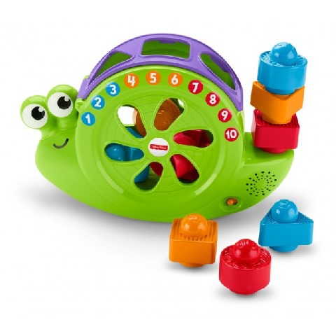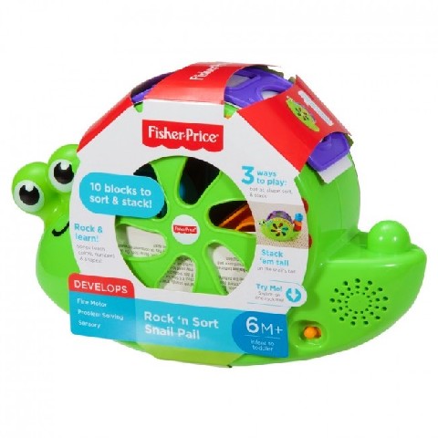 FP "Sound Sort Snail" Fisher-Price Музыкальный сортер "Улитка" Эта симпатичная улитка подарит вашему малышу больше, чем просто возможность сортировать фигурки по форме. Толкнув основу игрушки, малыш услышит одну из веселых мелодий. А десять разноцветных фигурок круглой, треугольной и квадратной формы можно класть в сортер или собирать пирамидкой на хвостике улитки. Требуется батарей: 2 x AG13/LR44 1,5B (включены) Рекомендуемый возраст: от 6 месяцев