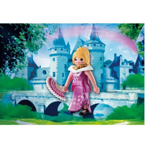 Royal Lady Playmobil Игровой набор "Придворная дама" Очаровательная фигурка выполнена в виде шикарно одетой придворной дамы с веером, который она превосходно держит в руках. Фигурка превосходно детализирована, она станет украшением коллекции миниатюрных куколок Вашей девочки от известного бренда "Playmobil". У куклы светлые волосы, четко прорисованное личико, шею украшает подвеска. Голова и руки куколки подвижные, в них можно вложить аксессуары для игры – веер в цвет платья. Комплект: фигурка, веер. Высота фигурки: 7,5 см Рекомендуемый возраст: oт 4-x лет