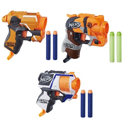 NER MICROSHOTS AST Hasbro Nerf "Microshots" (ast) Данное оружие от торговой марки Nerf в использовании весьма прост. Чтобы поразить цель, необходимо в ствол вставить патрон, хорошо оттянуть рычаг, затем прицелиться и нажать на спуск – и цель поражена. Nerf "Microshots" представляет собой карманное оружие, выполненное в ярком цвете и дизайне. В набор входит: бластер, 2 патрона, инструкция. Возраст: от 8 лет