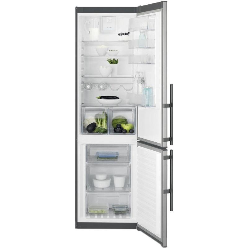Холодильник Electrolux EN3854MOX Модель EN3854MOX Производитель ELECTROLUX Габариты (ШxГxВ) 59.5x64.7x200.5 см Генератор льда отсутствует Дисплей есть Класс энергопотребления A++ Климатический класс SN, T Количество дверей 2 Количество камер 2 Количество компрессоров 1 Морозильная камера снизу Расположение морозильной камеры снизу Тип Холодильник с морозильником Управление электронное Энергопотребление в год 254 кВтч/год Общий объем 357 л Объем морозильной камеры 92 л Объем холодильной камеры 265 л Автономное сохранение холода до 18 ч Мощность замораживания до 4 кг/cутки Размораживание морозильной камеры No Frost Размораживание холодильной камеры капельная система Возможность перевешивания двери есть Дополнительные возможности суперохлаждение, суперзаморозка, индикация температуры Материал полок стекло Уровень шума до 43 дБ