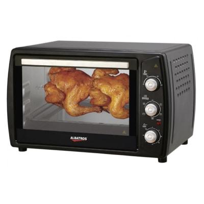 Электропечь Albatros A63BRC2 Вместимость 63 литра Максимальная мощность 2200 Вт Черный цвет вертел конвекция Контроль температуры от 90 ° C до 230 ° C Звуковое предупреждение при завершении программы 4 нагревательных элемента из нержавеющей стали 6-функциональный селектор лоток Решетка из нержавеющей стали Ручка для лотка Встроенный поддон для сбора отходов