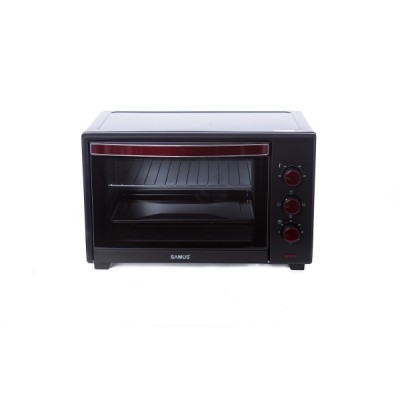 Электропечь Samus CS-45B2 максимальная мощность 2000 Вт емкость 45 литров управляющая температура. от 100 ° C до 230 ° C аналоговые часы - 60 мин. звуковое оповещение о завершении программы 4 нагревательных элемента из нержавеющей стали селекторные программы большой лоток решетка из нержавеющей стали поднос для сбора отходов черный цвет