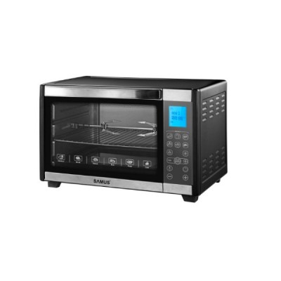 Электропечь Samus CSD-45BRC2 емкость 45 литров максимальная мощность 2000 Вт Электронный дисплей вертел конвекция управляющая температура. от 100 ° C до 230 ° C звуковое оповещение о завершении программы 4 нагревательных элемента из нержавеющей стали электронный селектор программ большой лоток решетка из нержавеющей стали поднос для сбора отходов черный цвет