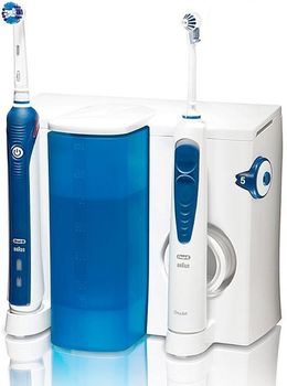 Зубной центр Oral-B PRO 3000+ С помощью зубного центра Oral-B PRO 3000 можно практически полностью забыть о проблемах с зубами. Он включает в себя все, что поможет содержать их в чистоте, обеспечит белоснежную улыбку и отсутствие воспалительных процессов. Комплекс по уходу за зубами включает в себя электрическую зубную щетку и ирригатор. Они располагаются на единой подставке, которая работает от электросети. Также в комплект входит контейнер на 600 мл воды и 4 различные насадки на ирригатор. Для подключения к основанию зубной щетки имеется две стандартные насадки ProWhite и Precision Clean, насадка для чистки межзубного пространства Power Tip, а также насадка для языка. Этот комплект обеспечит идеальную чистку зубов, с его помощью можно вычистить все, что мешает здоровью зубов и белоснежной улыбке. Для того, чтобы избавить себя от проблем с зубами, необходимо регулярно использовать подобный комплект. Сначала необходимо почистить зубы с помощью стандартной зубной щетки и удалить налет с языка. После следует воспользоваться ирригатором. Он может работать в двух режимах. Первый - это спиралевидный душ, который тщательно вымывает остатки пищи со всех сторон. А второй - монопоток. Он обеспечивает более сильную струю, которая способна удалить остатки из труднодоступных участков. Для лучшего эффекта использование ирриготора и зубной щетки должно быть комплексным. Именно их совместная работа приводит к наилучшим результатам. Так, при пульсирующем режиме работы зубной щетки можно достичь уникальных результатов, 40 000 движений в минуту обеспечивают разрыхление зубного налета, после чего его достаточно просто удалить с помощью струи воды. Все процессы оборудования автоматизированы, поэтому использование Oral-B PRO 3000 не доставит хлопот. Устройство оснащено системой автоматического отключения через 10 минут работы, что исключает возможность перегрева аппарата. Комплектация: Насадка Precision Clean, Насадка 3D White, Насадка Sensitive, Насадка Floss Action, Насадка Power Tip, Насадка иригатора OxyJet, Насадка TriZone Особенности: 3D технология Технология Oxy Jet Таймер: 4 по 30 сек Количество насадок, шт.: 7 Время работы, мин: 30 Время зарядки, ч,мин: 16 часов Скорость вращения, дв/мин: 8800 Таймер: да Тип батареи: аккумулятор/сеть Доп. особенности: 3D очистка