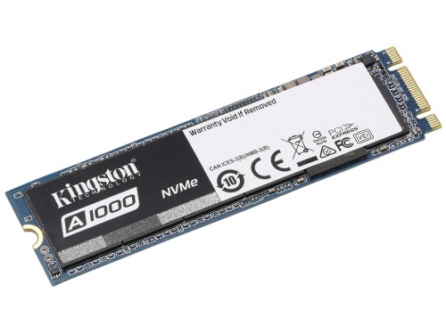 M.2 NVMe SSD 240GB Kingston A1000, Interface: PCIe3.0 x2 / NVMe1.2, M2 Type 2280 form factor, Sequential Reads 1500 MB/s, Sequential Writes 800 MB/s, Max Random 4k Read 100,000 / Write 80,000 IOPS, Phison E8 controller, NAND 3D TLC