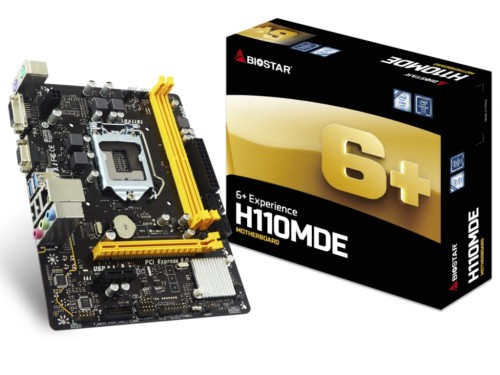 Материнская плата Biostar H110MDE, Socket 1151, Intel® H110, Dual 2xDDR4-2400, CPU Intel graphics, VGA, DVI, 1xPCIe X16, 4xSATA3, 1xPCIe X1, ALC662 HDA, GbE LAN, 4xUSB3.1, mATX Socket LGA 1151 Тип поддерживаемой памяти DDR4 Количество слотов памяти 2 PCI Разъёмы 1xPCIe X16, 1xPCIe X1 Видео порты VGA, DVI Тип Аудиовыхода 3 Порта Порты ALC662 HDA, GbE LAN, 4xUSB3.1 Форм-фактор: Micro-ATX Количство портов SATA 3, Портов 4xSATA3
