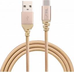 Cablu de date Tellur USB -Lightning MFi Kevlar 1m, 2.4A, roz-auriu