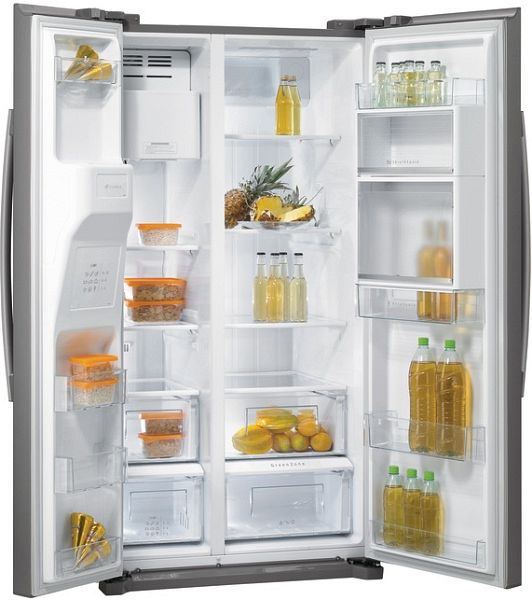 Холодильник GORENJE NRS 9181 CXB Тип холодильника: SIDE-BY-SIDE Общий объем: 549 л Полезный объем холодильной камеры: 370 л Полезный объем морозильной камеры: 179 л Класс энергопотребления: A+ Потребление электроэнергии в год: 445 кВт.ч/Год Уровень шума: 41 дБ Климатический класс: SN; T Производительность замораживания в сутки: 13 кг Длительность хранения при отключении питания: 4 ч Управление: электромеханическое Количество полок в холодильной камере: 4 Материал полок в холодильной камере: стеклянные Технические особенности: инверторный двигатель; зона свежести; суперохлаждение; дисплей Цвет: нержавеющая сталь Высота: 177 см Ширина: 91 см Глубина: 76 см Вес без упаковки: 107 кг