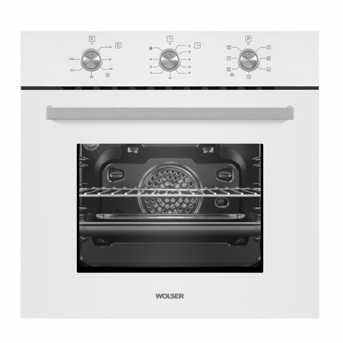 Духовой шкаф Wolser WL- F 67 MW Тип Электрическая Форм-фактор Встраиваемая Внутрений объём 67 л Гриль Да Управление Механическое Таймер ДаДуховой шкаф Wolser WL- F 67 MW